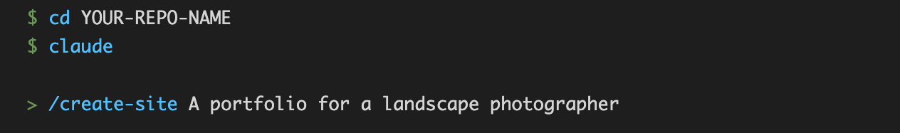 Click “Use this template” on GitHub to create your repository, clone it locally, then run claude. Three minutes later, you have a working site. No configuration files, no build steps, just conversation with Claude.